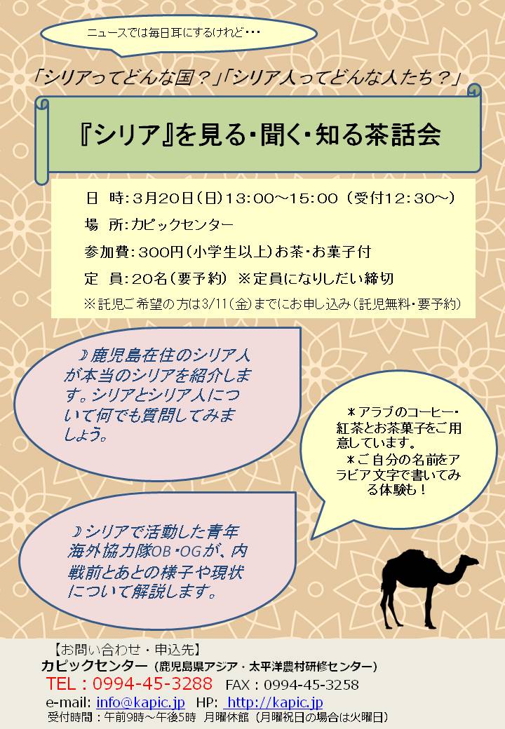 お申込み・お問い合わせはお電話またはEメールにてカピックセンターに